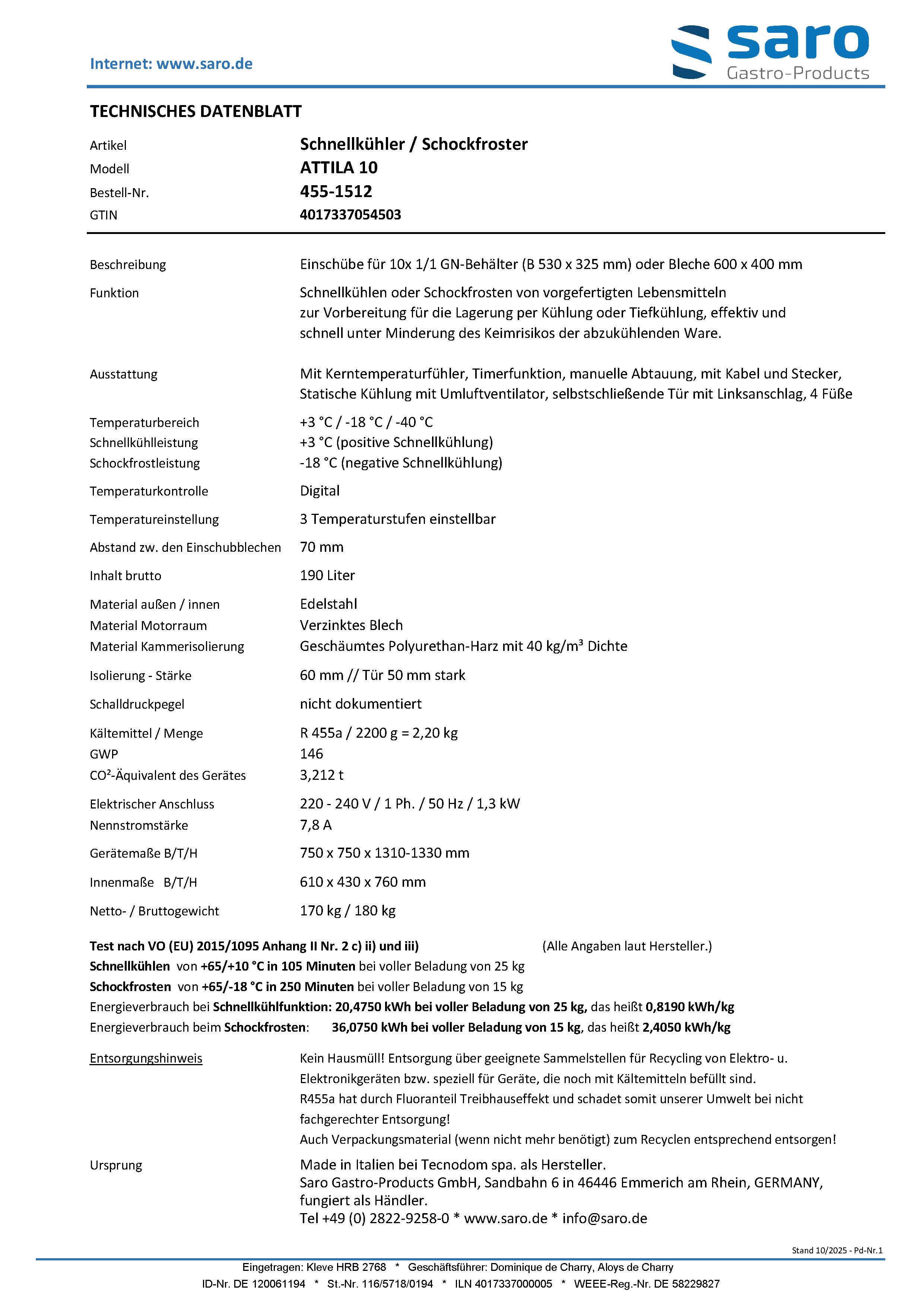 Schokvriezer 10 x 1/1 GN Model ATTILA 10