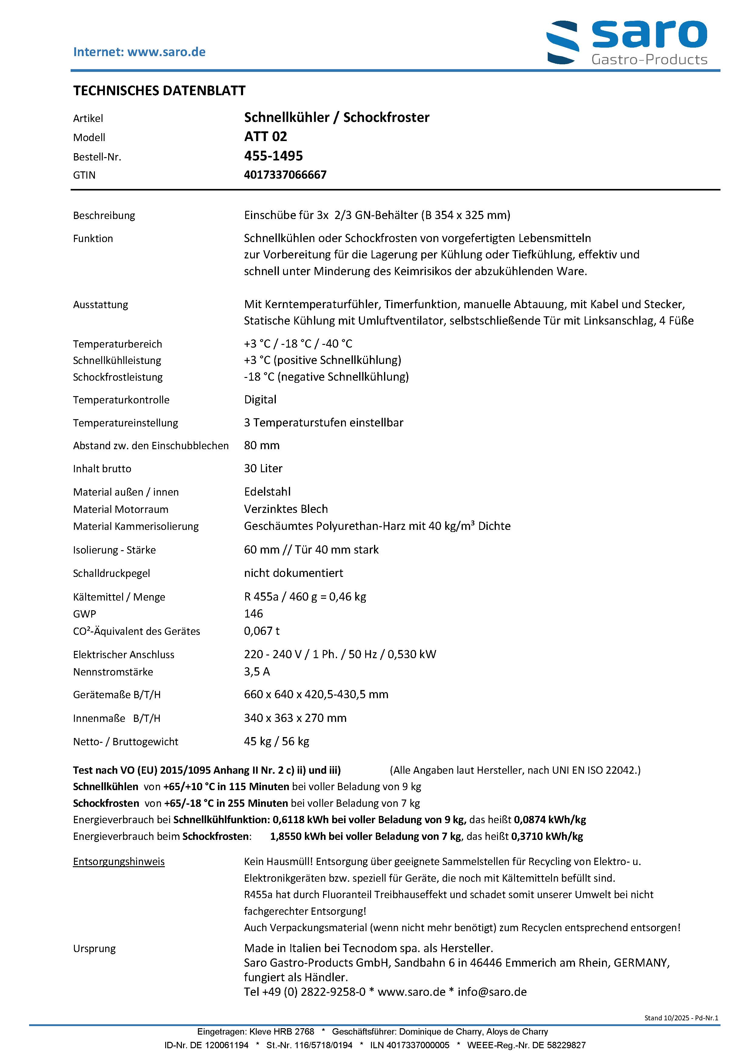 - Schokvriezen: van +65°C / -18°C in 255 minuten, hoogste laadcapaciteit: 7 kg