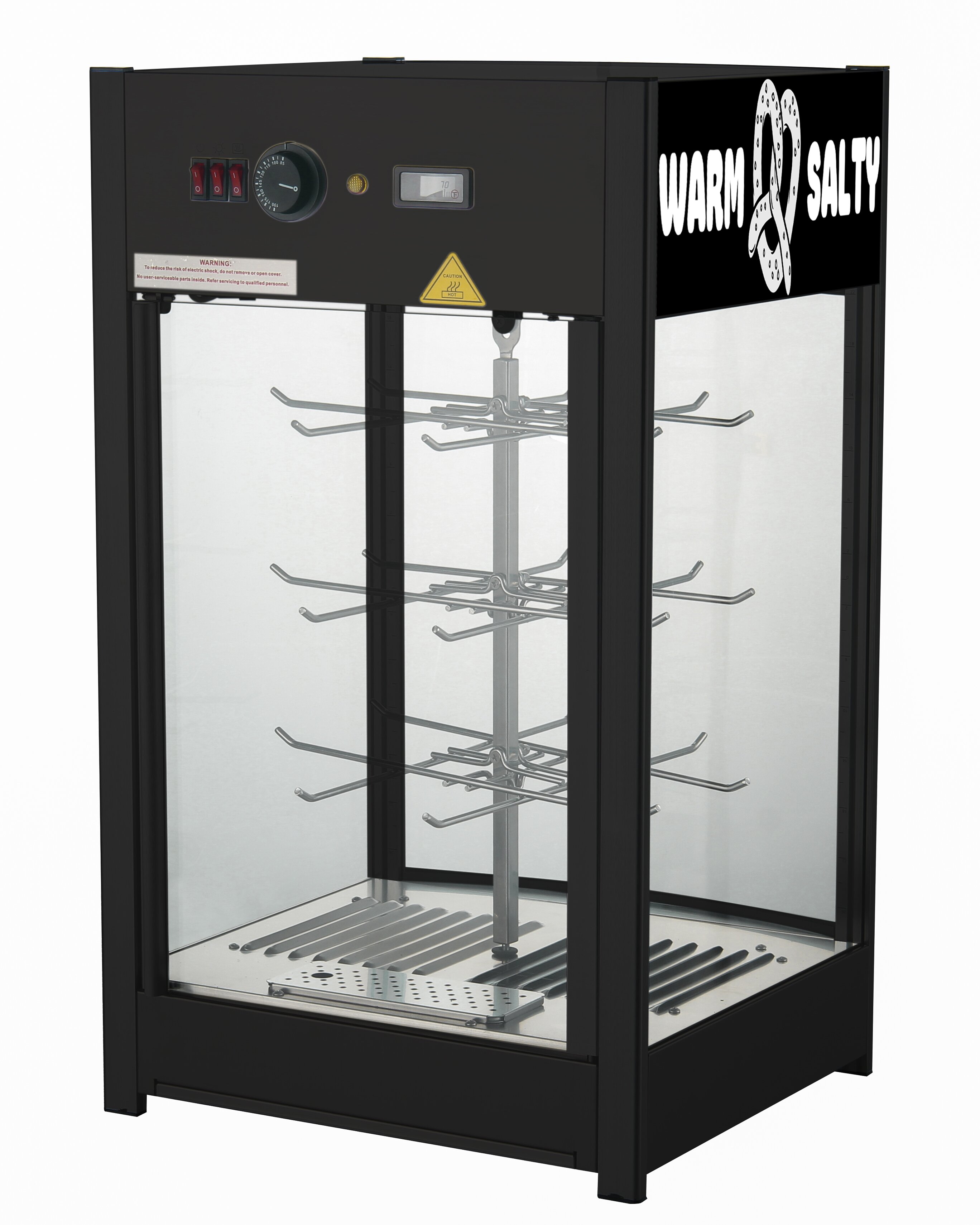 - Tijdens gebruik bestaat er brandwondenrisico door hete oppervlakken, vooral op de glazen oppervlakken en de binnenkant van de vitrine. Wees voorzichtig bij het openen en sluiten van de deur.